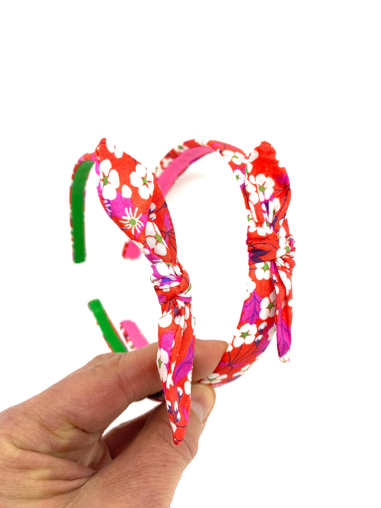PLEASE NOTE - the photos only highlight the Liberty fabric options available and may not match the choice you choose. Please select if you’d like the bow/thickness or not and note the price differentiation.